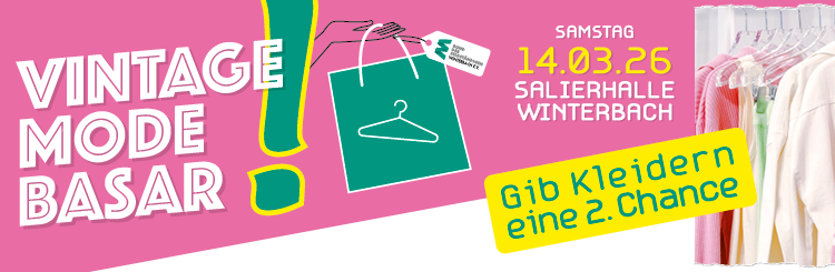 7. Vintage Mode Basar   Die BDS Frauen geben euren Kleidern eine 2. Chance   Samstag, 14.03.2026 Korbannahme: 09:00-10:00 Uhr Verkauf: 13:00-15:00 Uhr         Auszahlung: 18:00-18:30 Uhr    Salierhalle Winterbach, Lerchenstr. 60, 73650 Winterbach   Infos: Die Erfolgsgeschichte geht weiter: zum 7. Mal VINTAGE MODE BASAR DIE sortierte Erwachsenen Kleiderbörse in Winterbach! […]